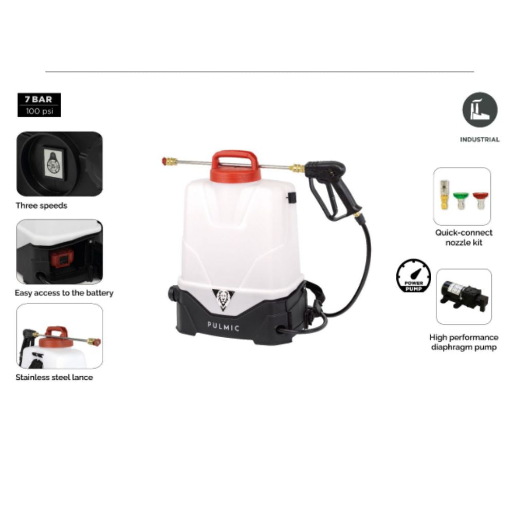 A high-performance electric sprayer designed for agricultural and professional use, the Pulmic Pegasus 15 delivers precision, comfort, and durability. With its 15-litre tank and powerful lithium-ion battery, it enables efficient spraying of herbicides, pesticides, and fertilizers.