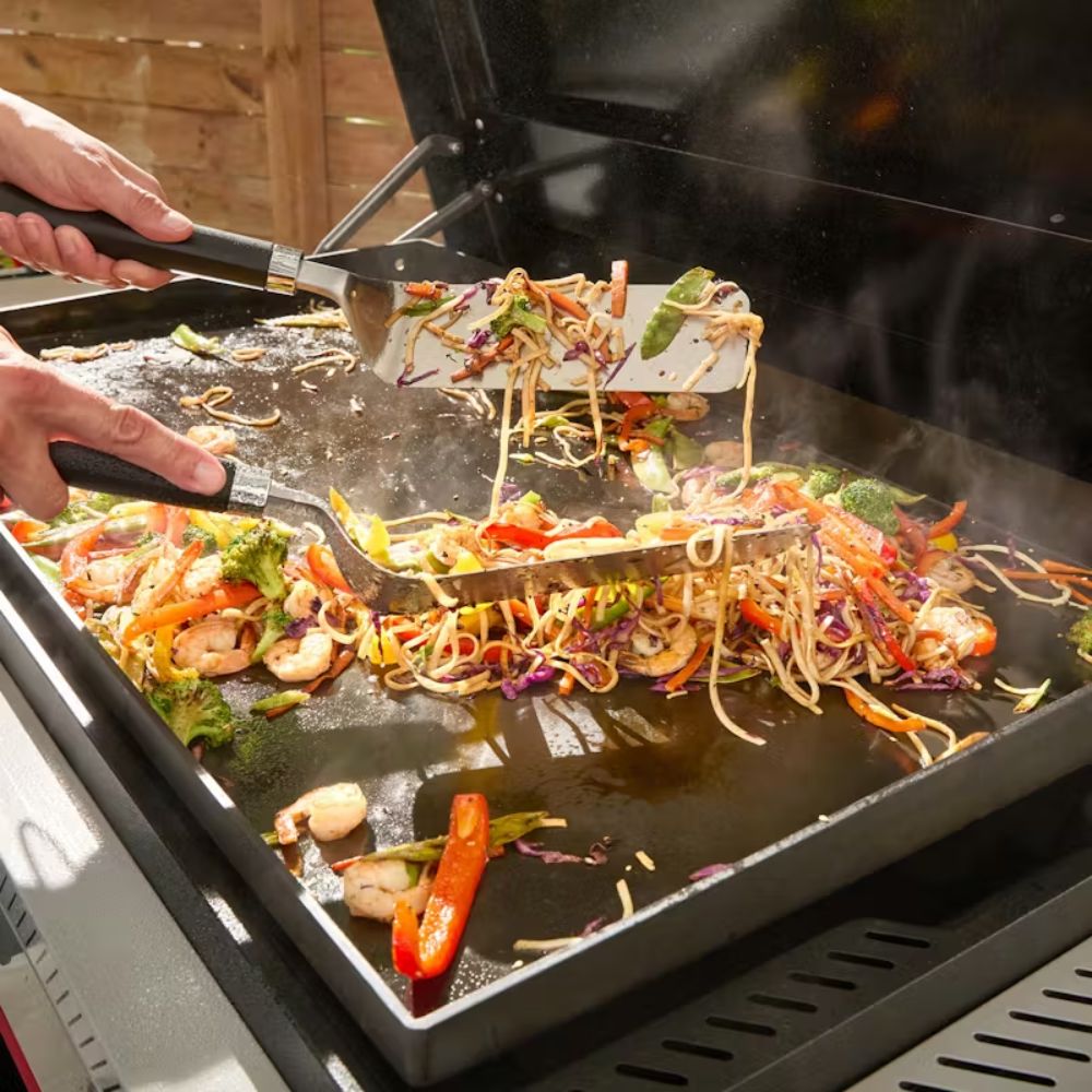 Master the art of griddle cooking with this essential two-piece spatula set. Designed for precision and control, these lightweight tools feature thin, tapered blades that slide effortlessly beneath foods—ideal for flipping eggs, stir-frying rice, and executing those impressive hibachi-style manoeuvres. The bevelled edges and rounded corners work together to scoop sauces and butter with ease, while the flexible construction gives you the finesse professional cooks demand. When service is complete, simply toss them in the dishwasher. Elevate your griddle game with spatulas built for both performance and convenience.