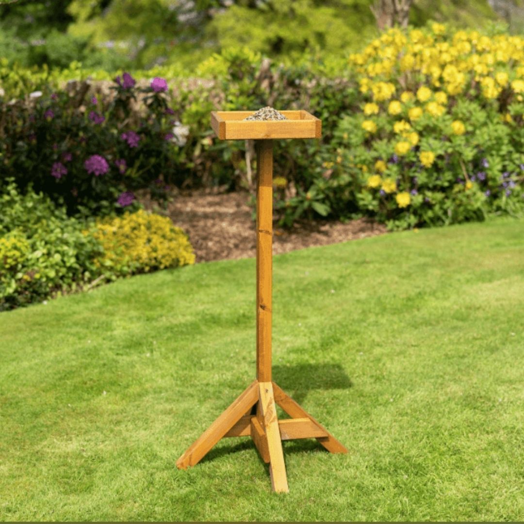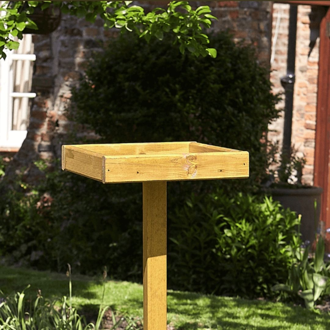 Welcome garden birds with confidence using this sturdy Wooden Bird Platform Table, designed for reliable feeding and comfortable landings. The spacious flat top accommodates all your feathered visitors, while the robust base provides unwavering stability even when multiple birds arrive simultaneously. Its understated aesthetic complements any garden style, from contemporary to traditional, blending seamlessly into your outdoor landscape without visual intrusion. Standing at 120cm tall with a generous 46cm square platform, this versatile feeding station suits gardens of every size and configuration. Create the perfect gathering spot where birds feel secure and well-nourished throughout the seasons.