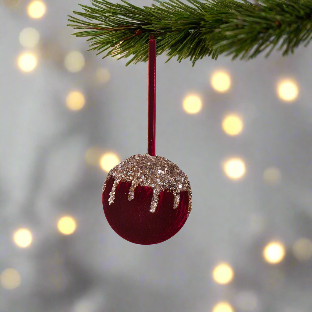 10cm Burgundy Gold Christmas Velvet Bauble