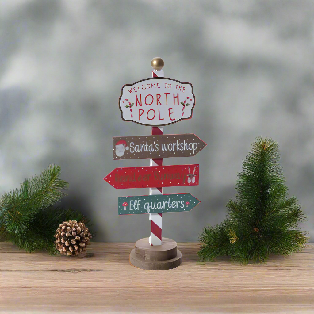 Delight your children with this charming wooden Winter Wonderland North Pole signpost. Perfect for holiday fun, it measures 18x10x35 cm and adds a festive touch to your seasonal decor.