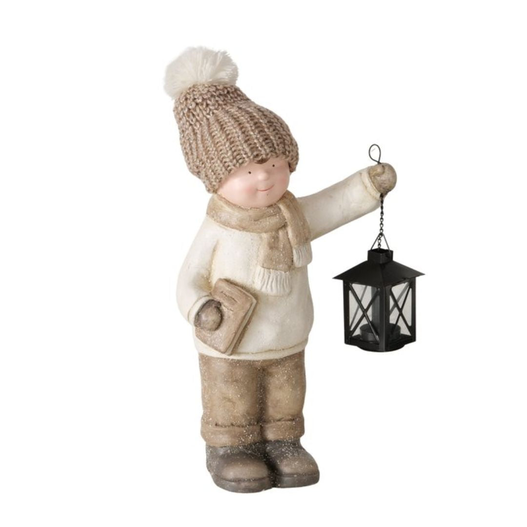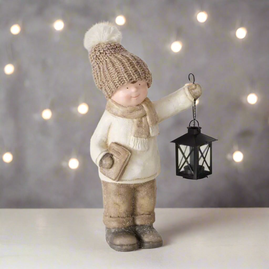 Christmas Figurine Boy with Lantern Tea Lighter Holder