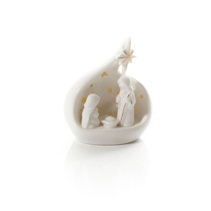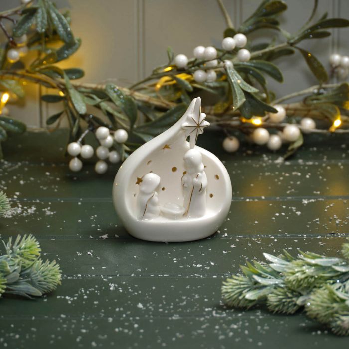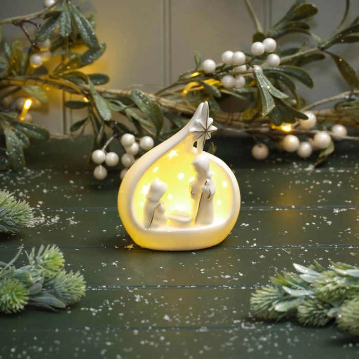 Christmas Nativity Holly and Heartfelt Teardrop Ceramic Ornament