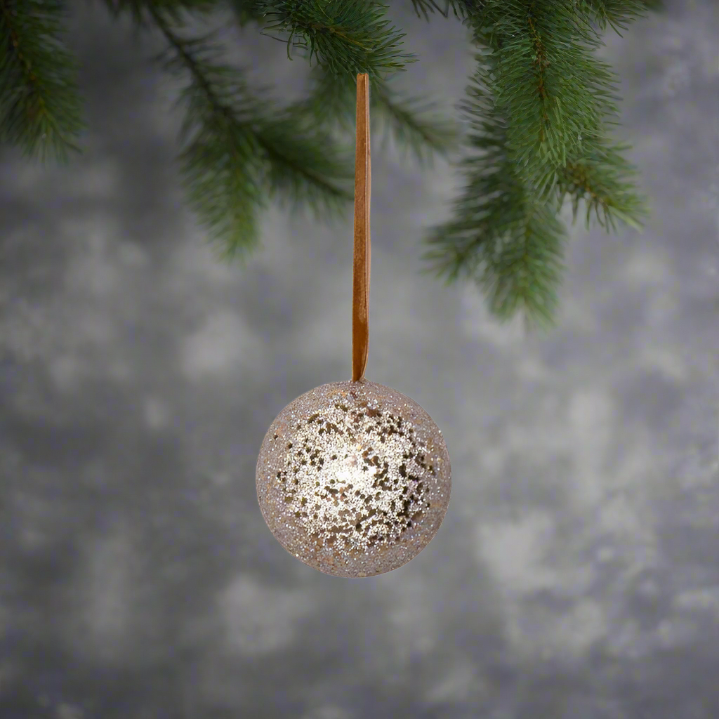 Add a touch of elegance to your holiday decorations with this 10cm Christmas bauble in rose gold. Its luxurious glitter finish creates a stunning and festive look for your Christmas tree.
