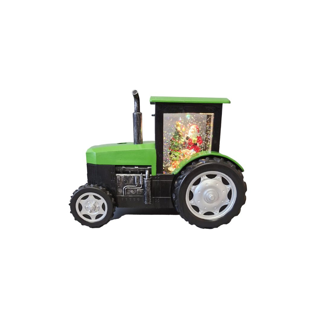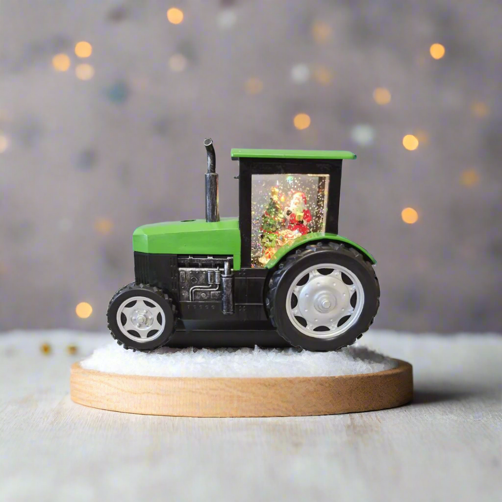 Add a festive touch to your holiday decorations with the green Snow Globe Tractor featuring Santa Claus. This charming snow globe blends the timeless appeal of a classic red tractor with Santa's cheerful presence, creating a cosy and welcoming holiday vibe. Illuminated by a soft, warm light, it’s perfect for brightening up mantelpieces, shelves, or seasonal displays. Bringing both Christmas magic and rustic charm, this distinctive piece is sure to be a conversation starter and spread joy throughout your home.