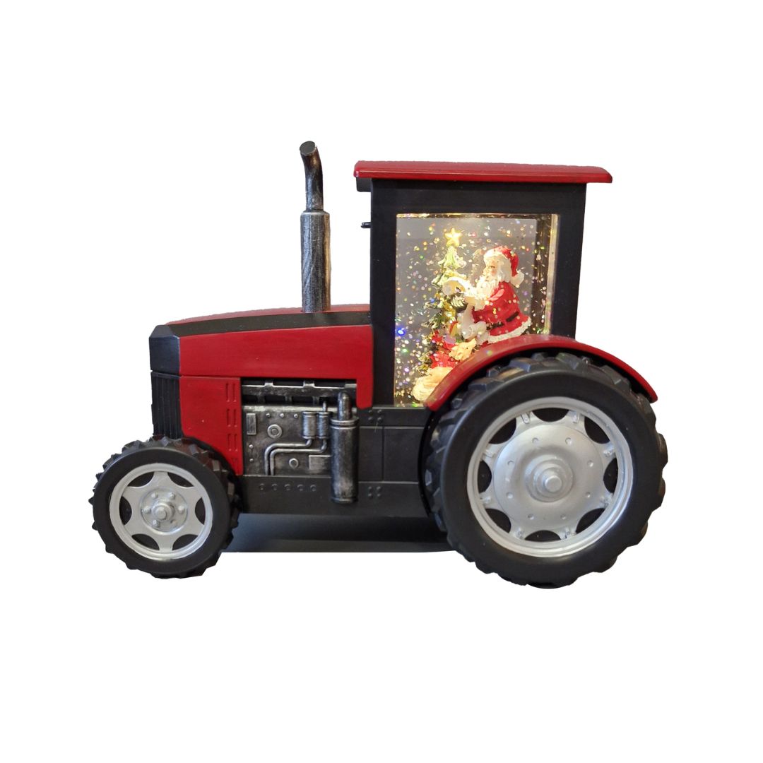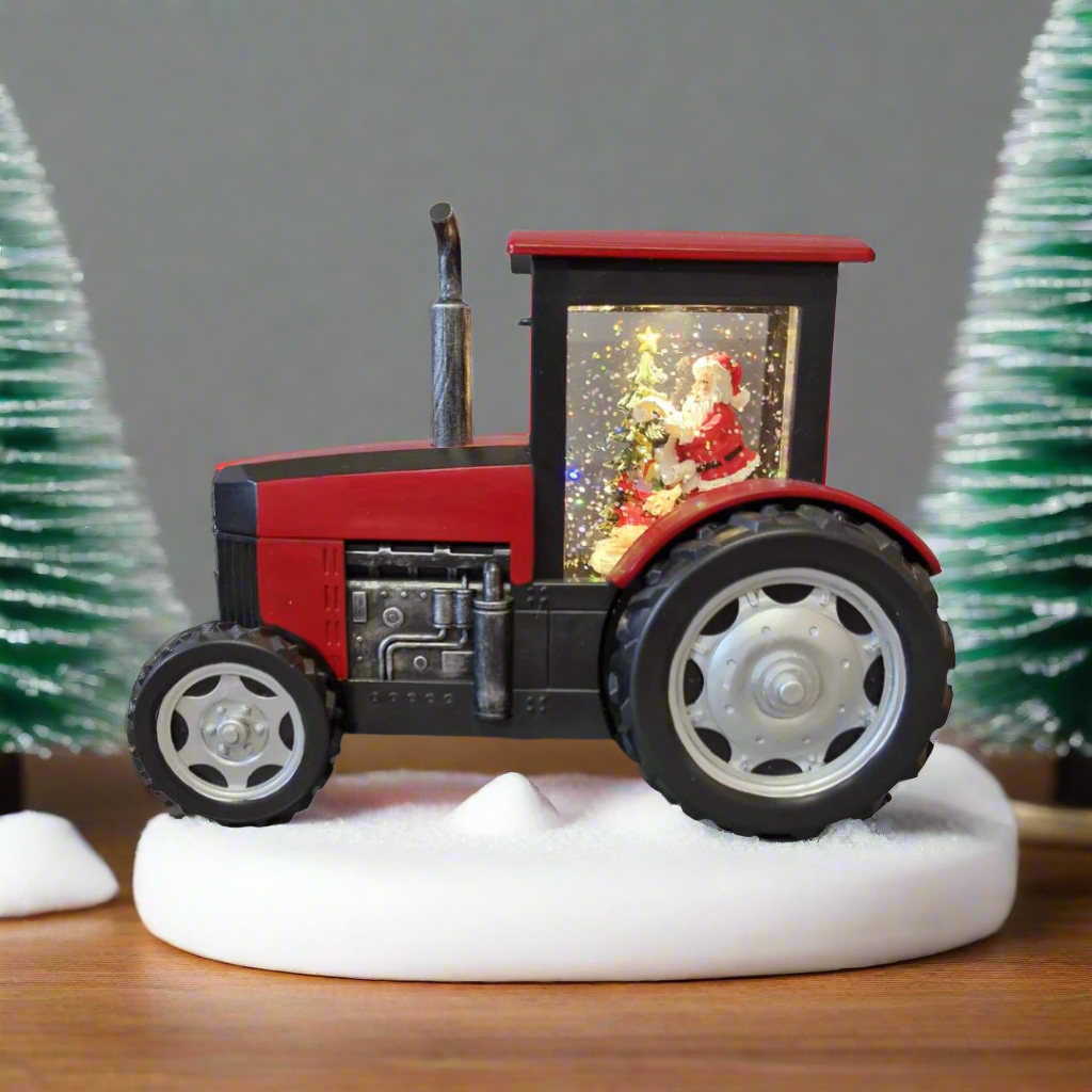 Bring festive charm to your holiday décor with the Red Snow Globe Tractor featuring Santa Claus. This delightful snow globe combines the nostalgic appeal of a classic red tractor with the joyful presence of Santa, creating a warm and inviting seasonal atmosphere. Enhanced by an enchanting light, it casts a cosy glow perfect for mantelpieces, shelves, or holiday displays. This unique decoration not only captures the magic of Christmas but also adds a touch of rural charm, making it an ideal centre piece that invites smiles and holiday cheer throughout your home.