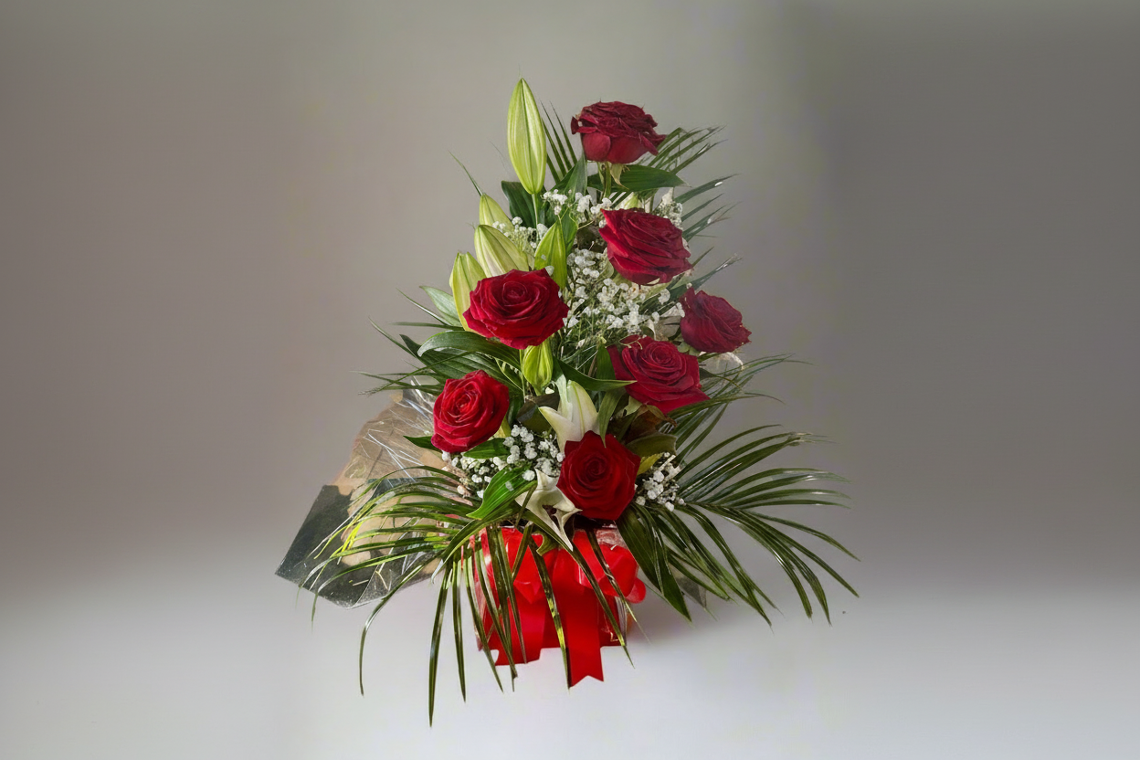 Indulge in the luxury of our Premium Red Rose Hatbox Arrangement. Crafted with care, this stunning bouquet features fresh cut roses and scented lilies. Perfect for Valentine's Day, Mother's Day, birthdays, or any occasion to express your love. Show someone special just how much you care with this beautiful arrangement.