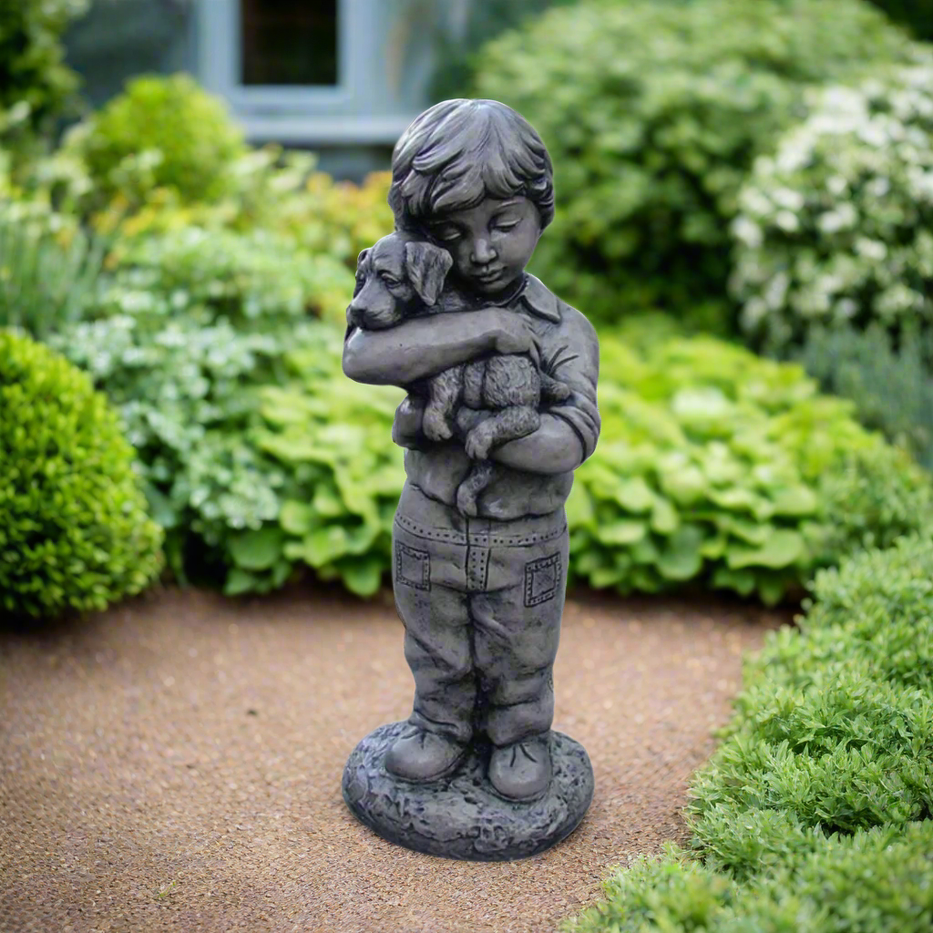 'Peter' Boy with Dog Concrete Statue