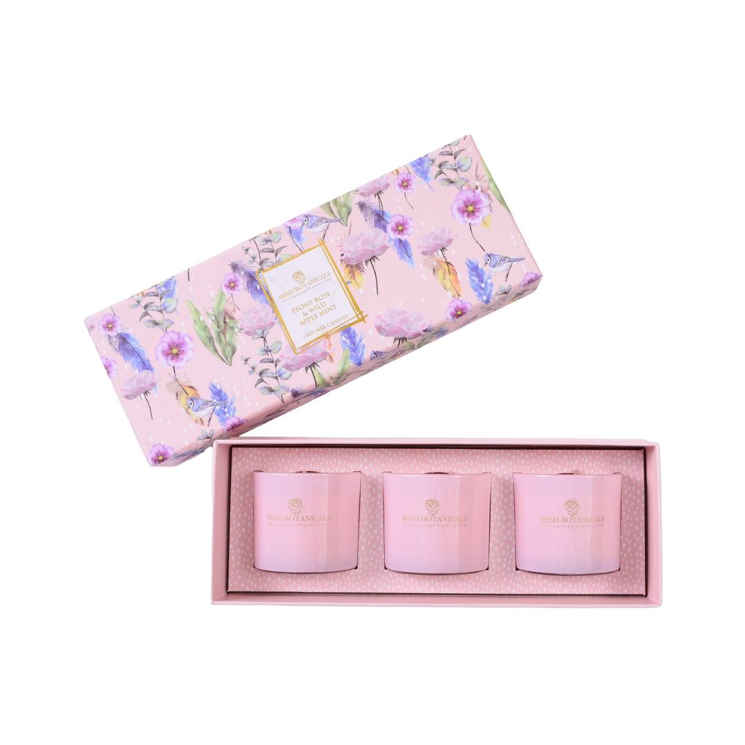 Irish Botanicals Peony and Wild Apple-mint -Candle trio