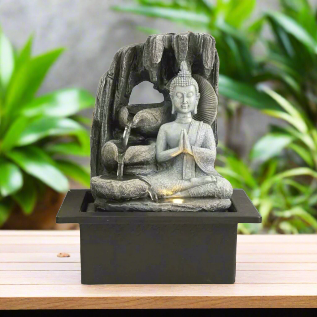 Create a tranquil atmosphere with this 25cm Praying Buddha Water Feature. Designed to inspire calm and serenity, it features a gentle water flow complemented by a soft light illuminating the Buddha in a classic praying stance. Ideal for indoor use, this mains-powered piece brings peaceful energy to any room.