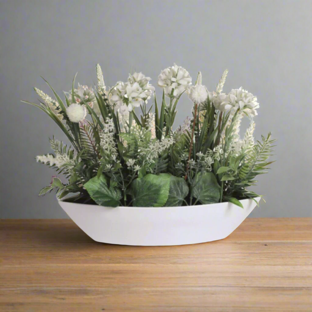 Flower Arrangement in White Ellipse Planter 27cm