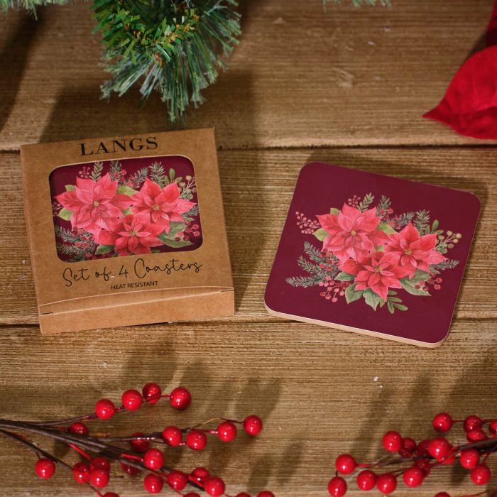 Christmas Poinsettia Heat-resistant Coasters Box of 4