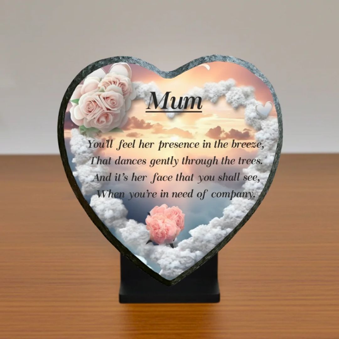 A heartfelt tribute to honour your mum's memory. This elegant slate grave plaque features a touching heart design, crafted to endure through seasons while maintaining its natural beauty. Perfect for creating a peaceful, personal space of remembrance in the garden or cemetery. A meaningful way to celebrate the love and warmth she brought to your life.