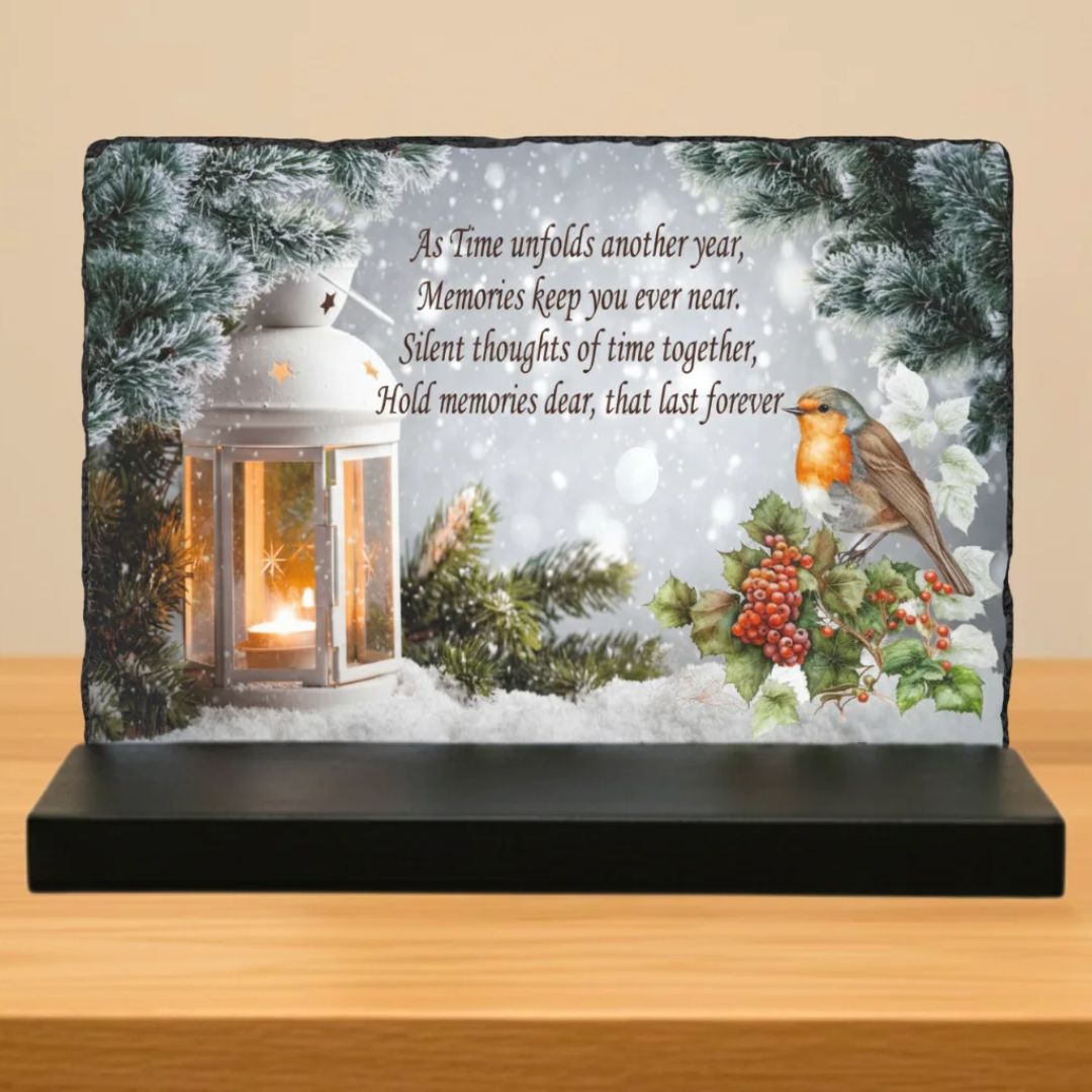 This memorial plaques is made from real slate with a natural stone uneven texture edge. Slight variations in the size of slate and natural imperfections or pits in the surface, which may be visible in the final print, all give each slate its own distinct and unique features.