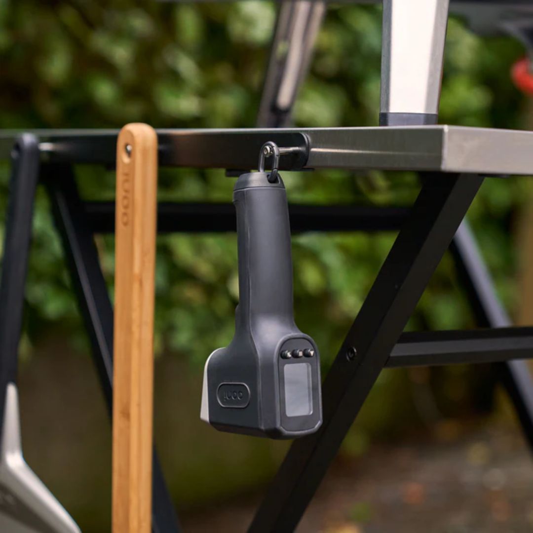 With a contoured, ergonomically-designed handle, smooth and durable thermoplastic casing, and a padded trigger, the Ooni Digital Infrared Thermometer has been engineered with comfort in mind. You can also easily store the thermometer by attaching it to the Ooni Table using its removable hang loop attachment. -