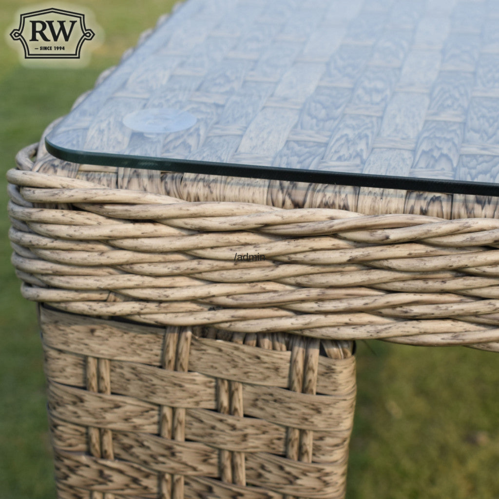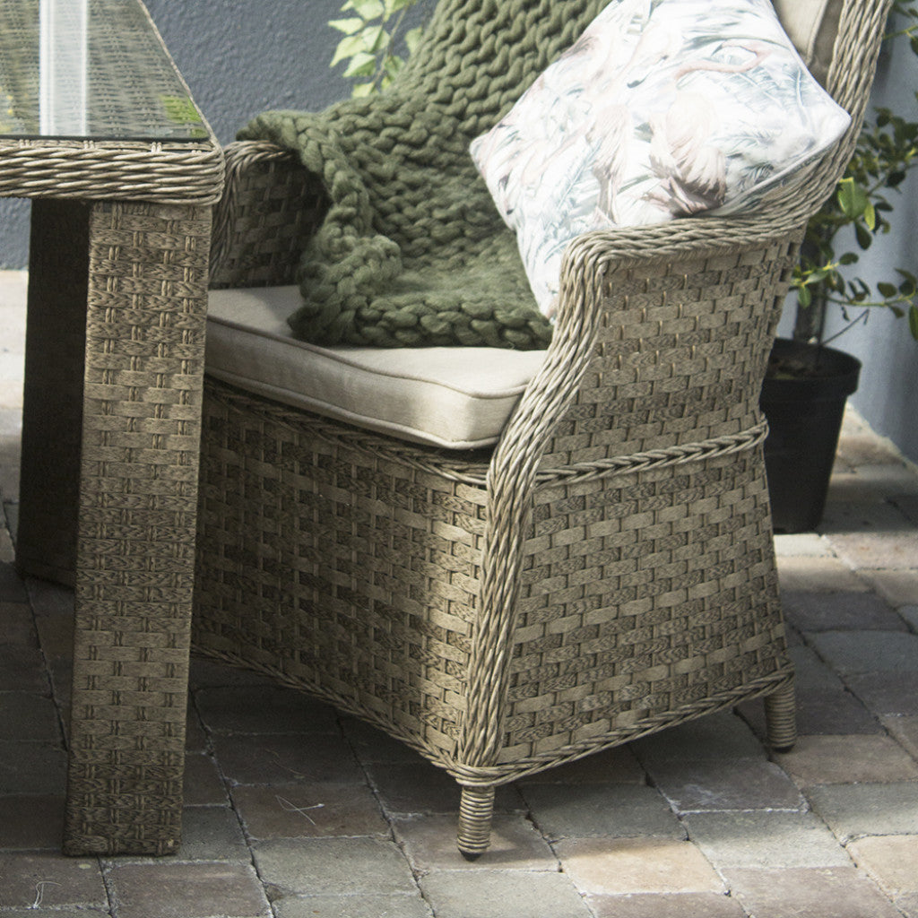 The Hampton ‘Alfresco’ range delivers exactly this and like all Rathwood Furniture, it’s designed with the best all-weather rattan, crafted from a high-quality PPE material with varied textures and tones woven around 1.2mm thick cast aluminium frames meaning this set will not rust and is fine to be left outdoors. The table top is made with rattan over a Polywood frame and for 2020 comes with a glass top made with 5mm tempered glass for safety. All cushions are easy to clean and made exclusively of the highest quality UV-protected & weatherproof materials. There is little to no maintenance on this set making it the perfect addition to your home! It comes with a 5-Year Structural Guarantee but please note the glass is not covered by the guarantee. There is a minimal, straightforward assembly required.