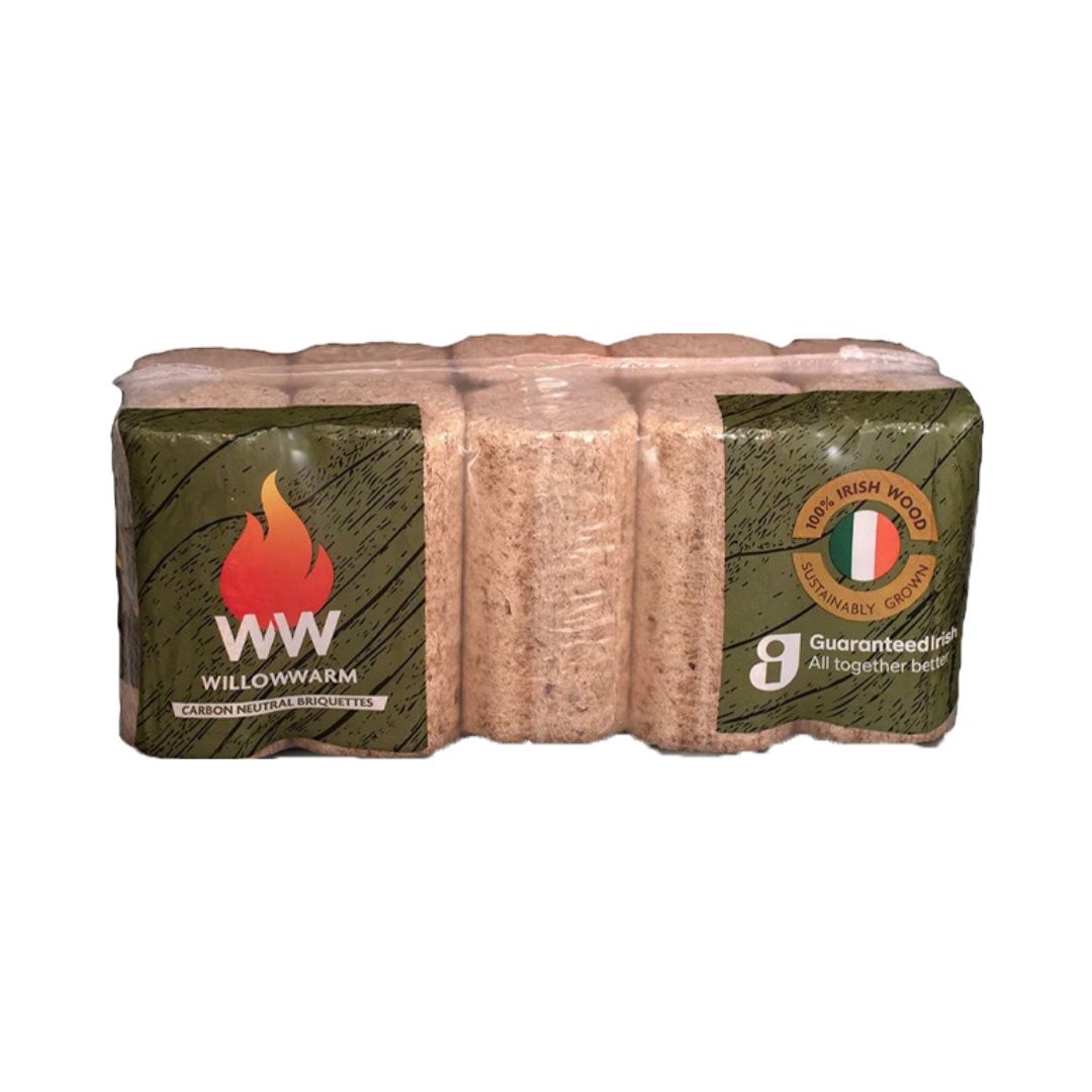 WillowWarm briquettes deliver powerful, long-lasting heat from 100% Irish-grown willow and biomass—no additives or artificial binders needed. With an impressive 4.8 kWh/kg calorific value, each briquette burns efficiently in stoves and open fires. At 850g per log, these carbon-neutral blocks pack serious warmth into a compact form. Buy in convenient 10-packs and experience reliable, eco-conscious heating that supports local Irish production while keeping your home toasty through winter.