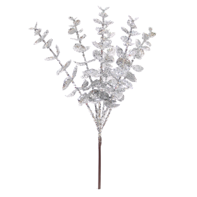27CM Silver Glitter Eucalyptus x 6 Pick