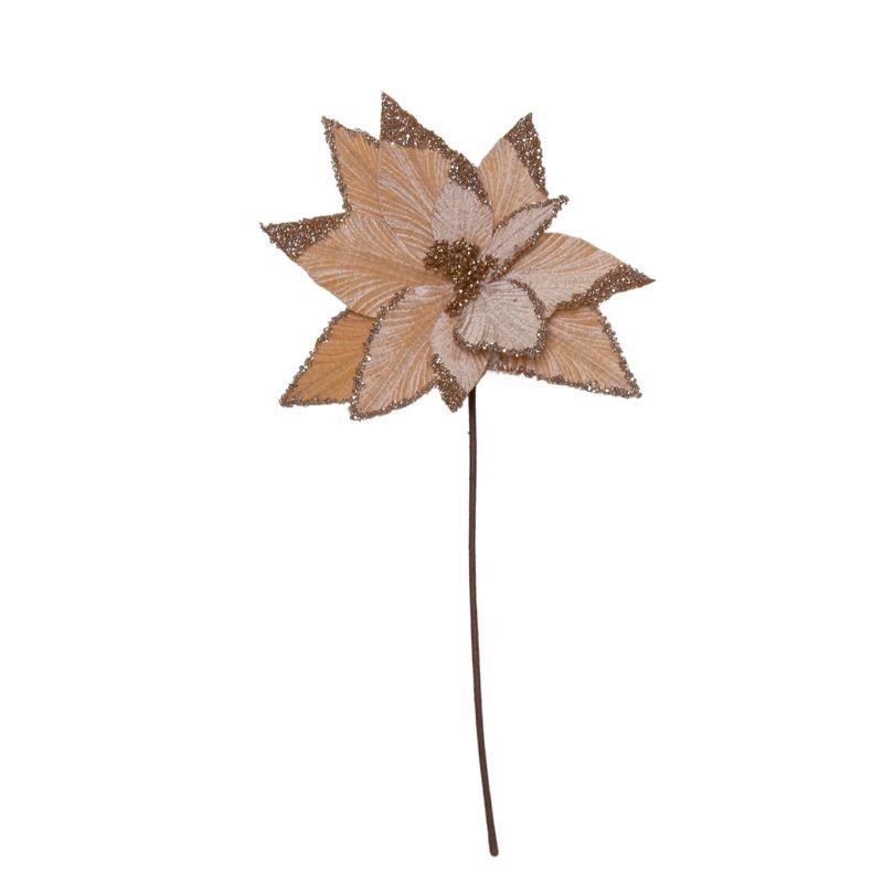 Elevate your holiday décor with this 45cm Dark Champagne Glitter Poinsettia Stem. Its shimmering finish and elegant dark champagne hue add a touch of sophistication and festive sparkle to any setting. Ideal for Christmas trees, garlands, floral arrangements, centerpieces, and vases, this versatile stem brings a luxurious and eye-catching accent to your seasonal decorations. Make your holiday displays truly memorable with this stunning addition.