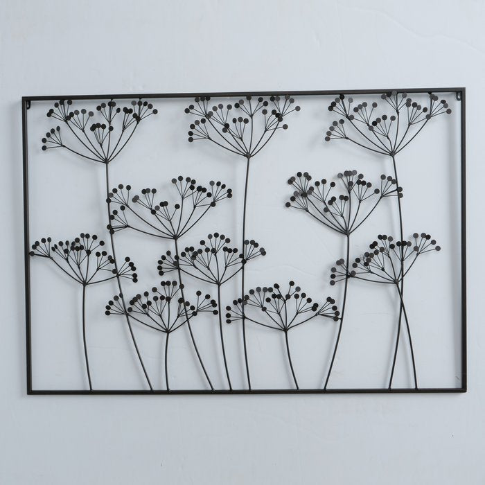 Elevate your home decor with our beautiful and durable Wall Hanging. Handcrafted with iron lacquered material, our Lontana wall object boasts a sleek black finish that will add a touch of elegance to any room. The striking rectangle design features a delicate flower motif, making it a perfect statement piece for your home. With a width of 110 cm, it is a versatile and eye-catching addition to your wall.