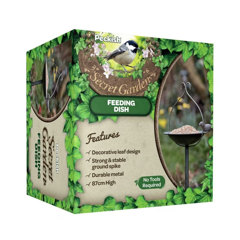AvailableOur Peckish Secret Garden Feeder Dish is the perfect centrepiece for your garden to attract all types of colourful and playful wild birds. Its decorative leaf design and antique finish will blend perfect in any garden surroundings.