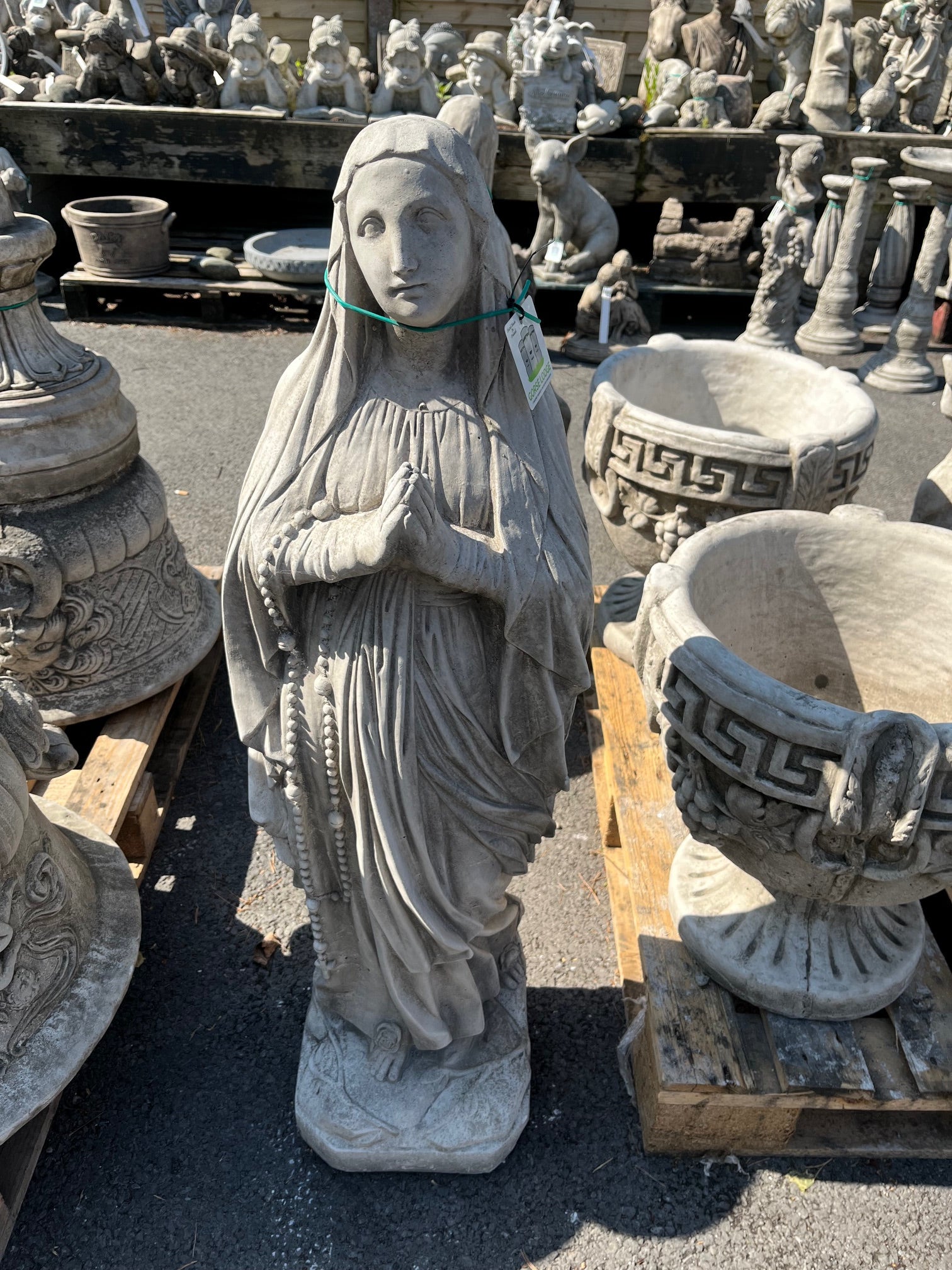 Add a touch of serenity to your garden with our Praying Virgin Mary Concrete Ornament. Standing at 102cm tall, this beautiful statue exudes peace and grace. Made of durable concrete, it will withstand the elements and provide a lasting symbol of faith. Bring home this inspiring piece today!