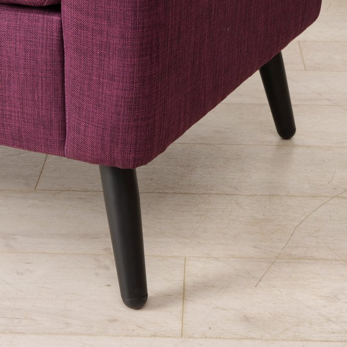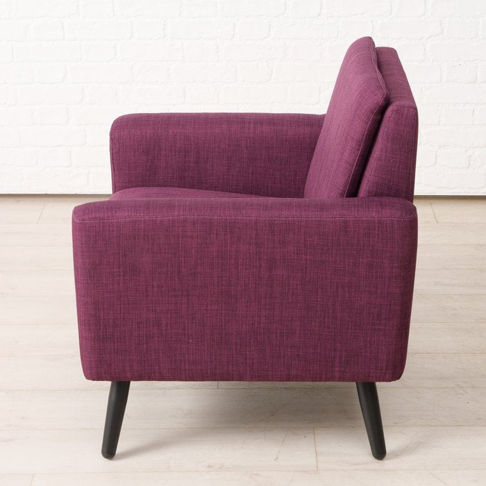 The Purple Armchair combines durability and style with its metal, wood, and flax construction. Its vibrant colour is abrasion resistant and its comfortable shape promises relaxation. With a maximum load of 120 kg, it's perfect for any space. Elevate your decor with this eye-catching and functional armchair.
