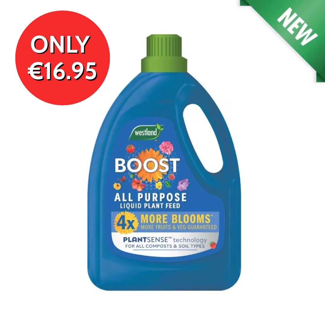 Westland Boost All Purpose Liquid Plant Feed transforms your garden with its revolutionary PlantSense Technology, delivering an impressive 4x more blooms. Watch as your floral displays become truly spectacular while your fruit and vegetable yields increase dramatically. This versatile formula works wonders on all compost and soil types—including Ericaceous varieties—making it the perfect solution for every plant in your garden. Don't settle for ordinary results when extraordinary growth is just a feed away.
